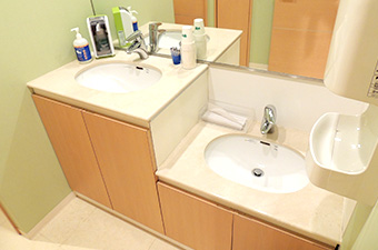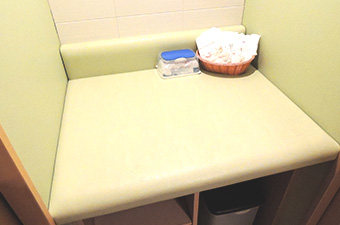 しっかりと滅菌し、安全で快適な空間づくりを目剤しています。オープンタイプで圧迫感がなく、かつプライバシーも守られています。ベビーカーや車椅子の方もそのまま入っていただけます。 -