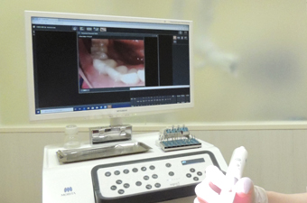 お口の中の様子をモニターに写し出し、見えづらい所も見逃さず診断します。ご希望の方にはプリントアウトしてお渡ししています。 -